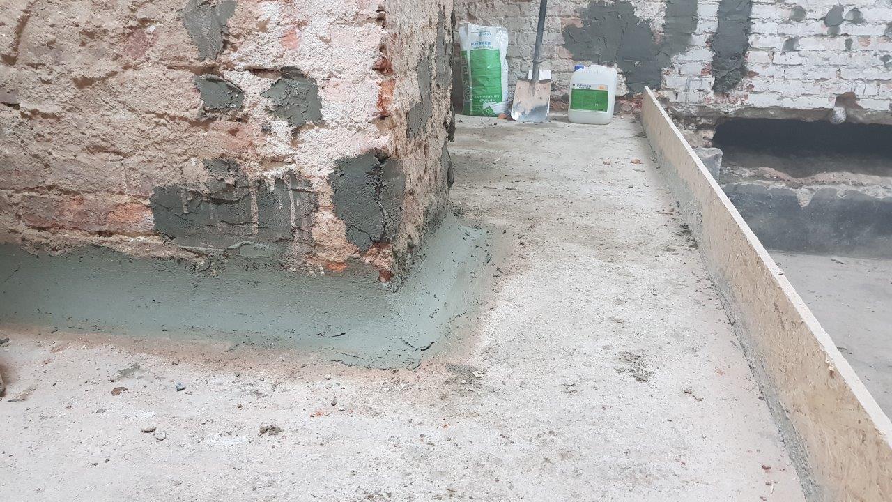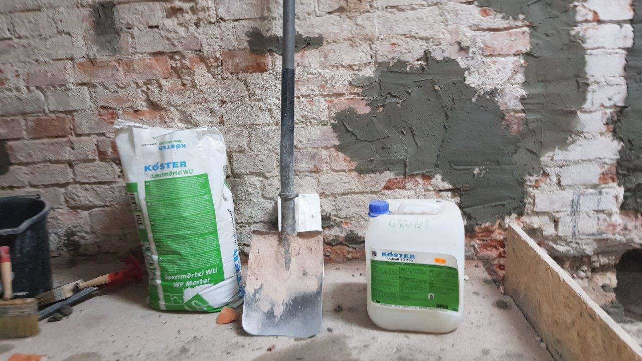 Wykonano uszczelnienie ścian piwnic od środka oraz odtworzona została izolacja pozioma w ścianach w technice iniekcji ciśnieniowej preparatem iniekcyjnym KOSTER Mautrol 2K. Następnie wykonano system tynków renowacyjnych KOSTER Sanierputz szary oraz hydroizolację posadzki przy użyciu szlamu uszczelniającego KOSER NB 1 oraz hydroizolacji hybrydowej KOSTER NB 4000.