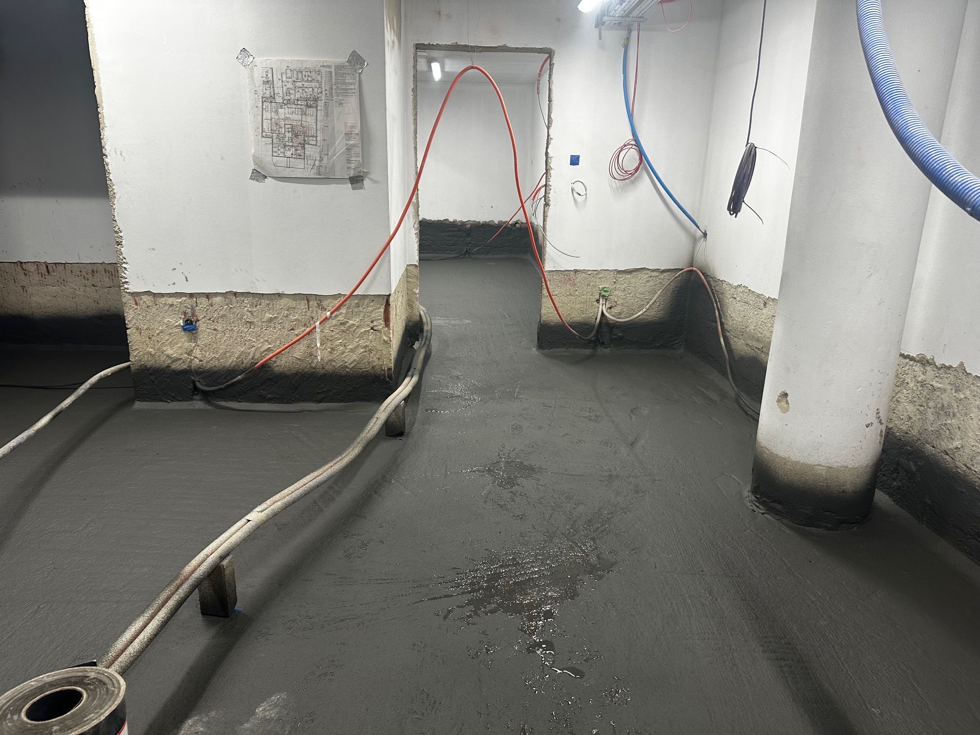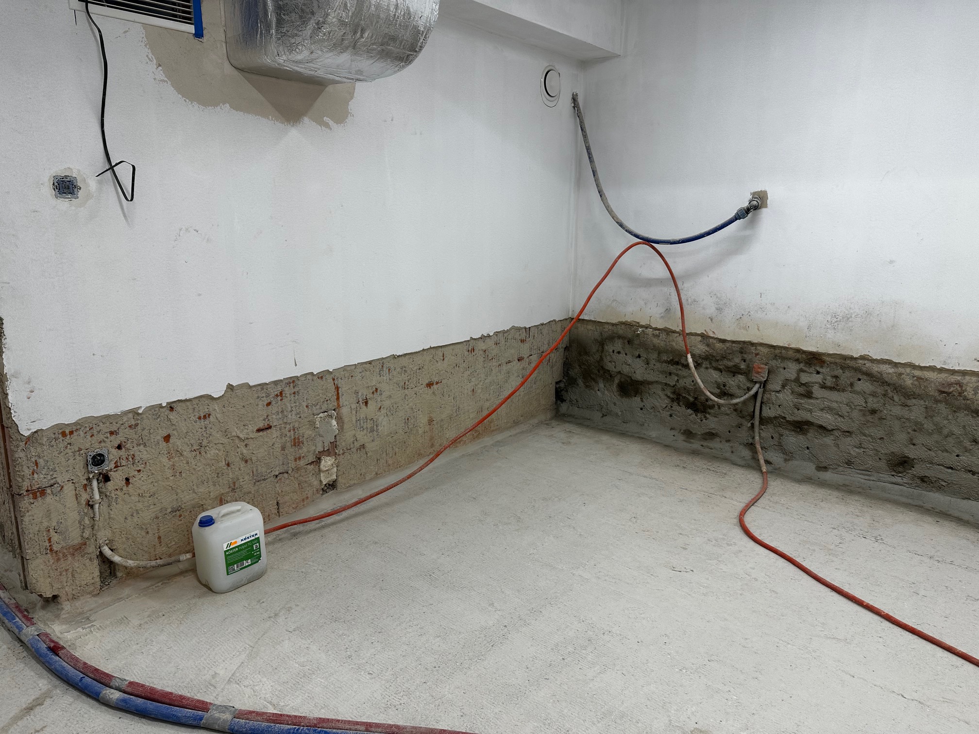 Dylatacja budynku została uszczelniona przez wklejenie taśmy JSTO. Jako hydroizolację ścian zastosowano szlam uszczelniający KOSTER NB1 oraz hydroizolację hybrydową KOSTER NB 4000. Przeponę poziomą w ścianach wewnętrznych wykonano z kremu iniekcyjnego KOSTER Crisin Creme.